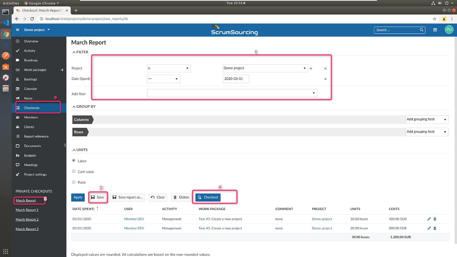 1.プロジェクトリーダーが請求表とチェックアウトを作成します。